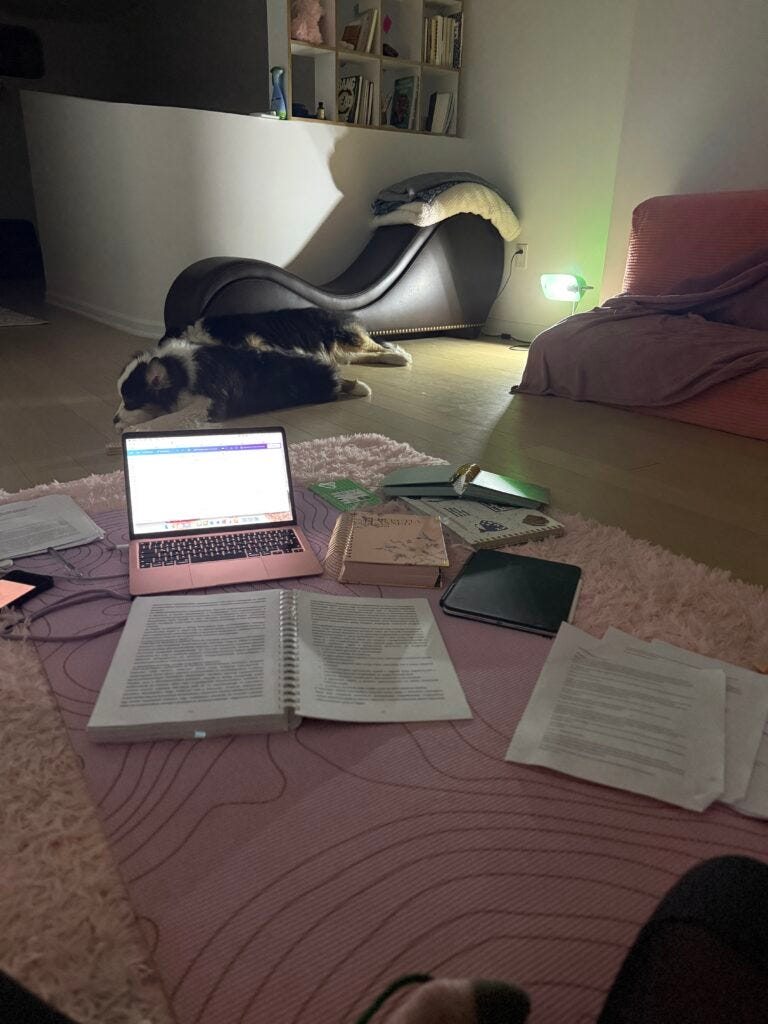 And I know this because I see it, not just in theory, but in my body, in my bones. This vision doesn’t let me rest because I’m not meant to sleep through it; I want to build it. This is the part no one sees: the late nights, surrounded by books and tabs, the blinking cursor, the warmth of my sleeping dogs by my feet, and the weight of a future I can’t not write, even in the dark.